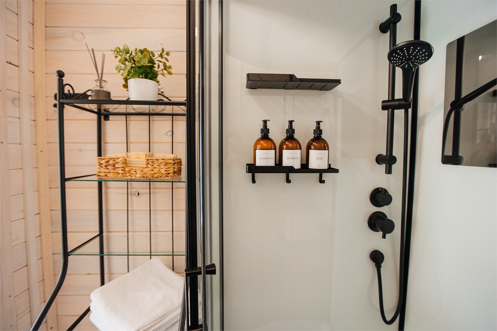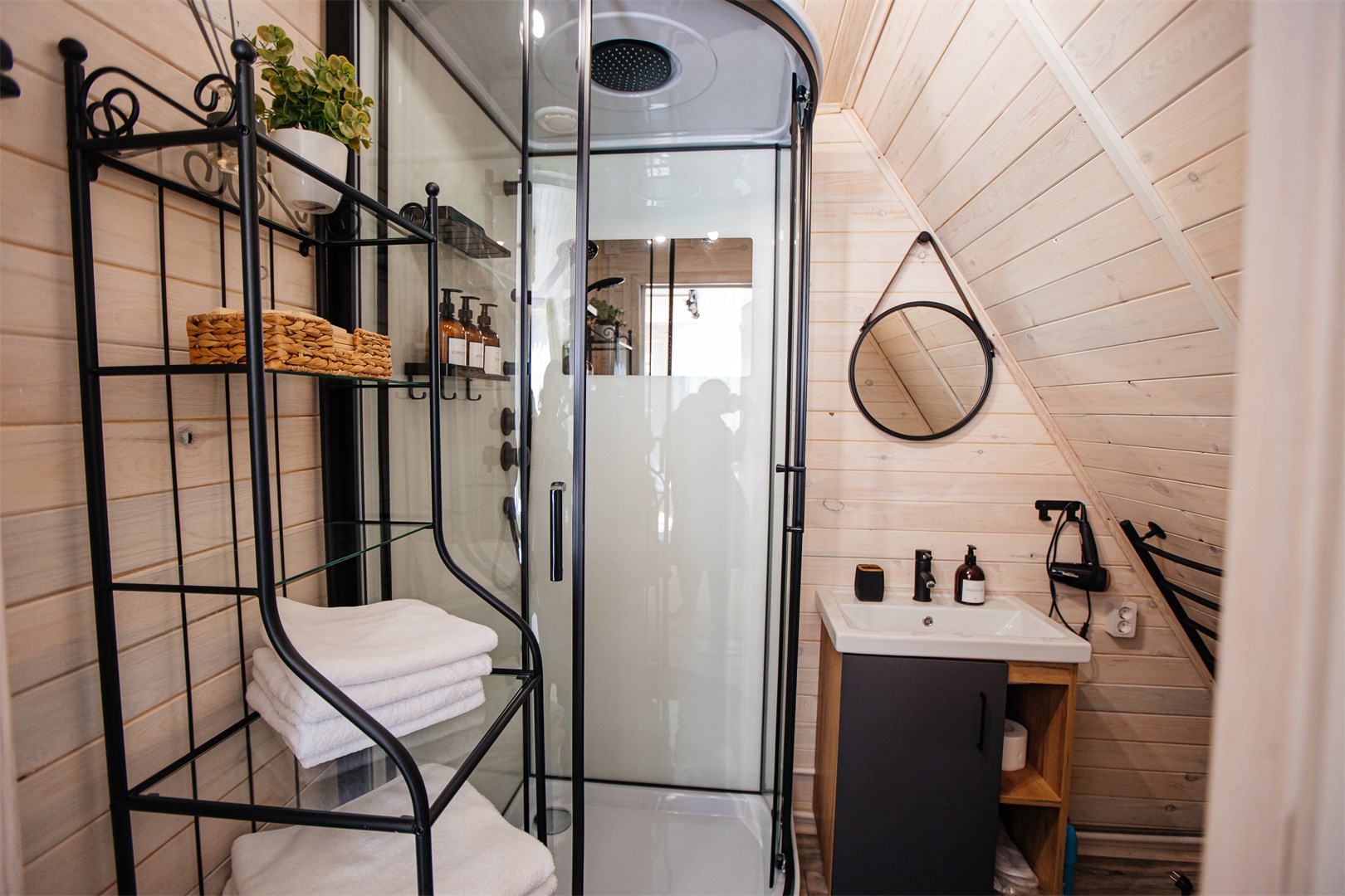 - Санузел: с душевой кабиной, тапочки, туалетные принадлежности, фен, халат